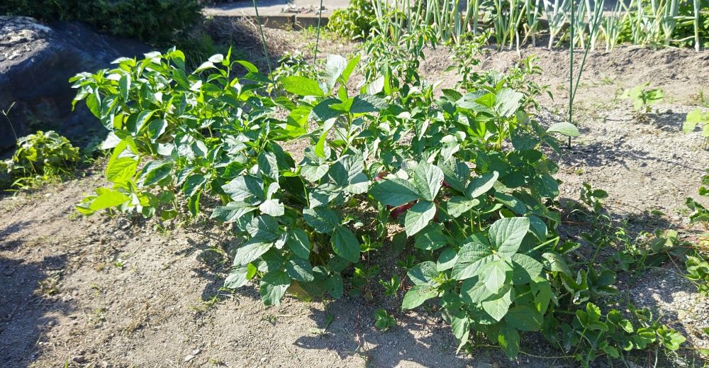 キューリの株元を覆いつくす枝豆