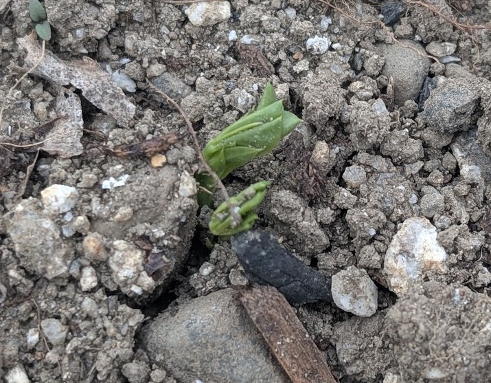 女将がスナップエンドウの芽が出ないとブツブツ言っていたら