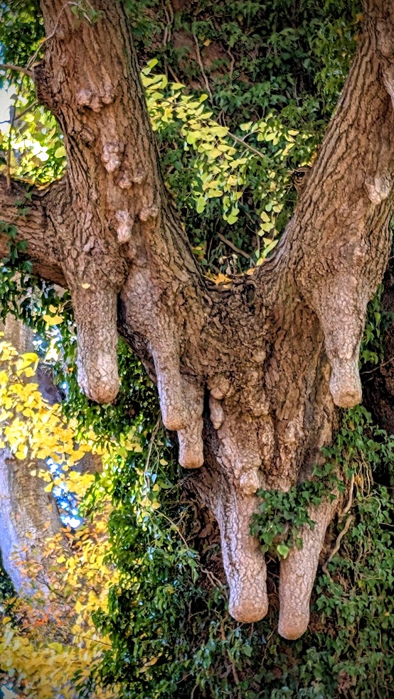 県図書入口の右側(水戸署側)の巨大なイチョウは垂乳根のイチョウです