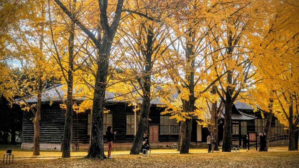 地面は黄色いイチョウの絨毯がビ~ッシリ