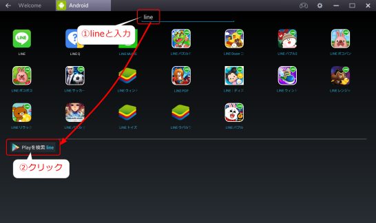 - BlueStacksでLINEアプリをインストール