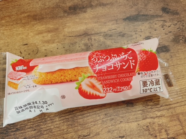 そして、最後3品目。「つぶつぶいちごチョコサンド(税込み250円)」です。
