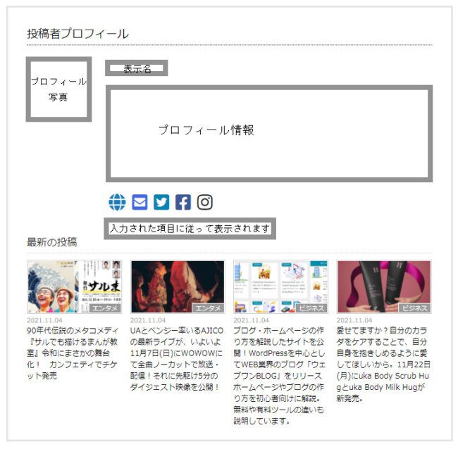 投稿記事下部のプロフィール表示例(著者情報)