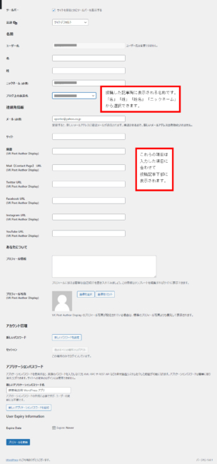 「プロフィール情報」を入力しますと、投稿記事下部にプロフィールが表示されます。