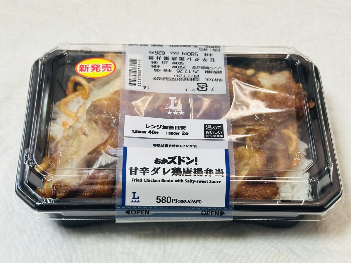 ▼【ローソン】「おかズドン!甘辛ダレ鶏唐揚弁当」唐揚4個がご飯を覆う満腹感は想像以上だった