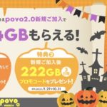「povo2.0」が、10月の月末セールとして、期間限定トッピングの「1GB(30日間)499円」と、データ増量キャンペーンで最大25GB増量を実施中です。