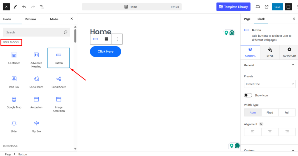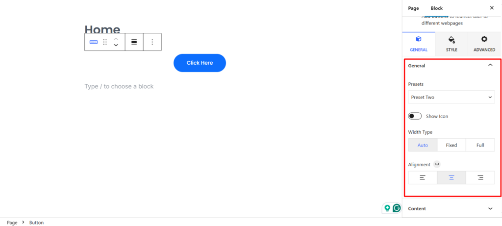 Our Button block offers various customization options, allowing you to create visually appealing and informative headings.
