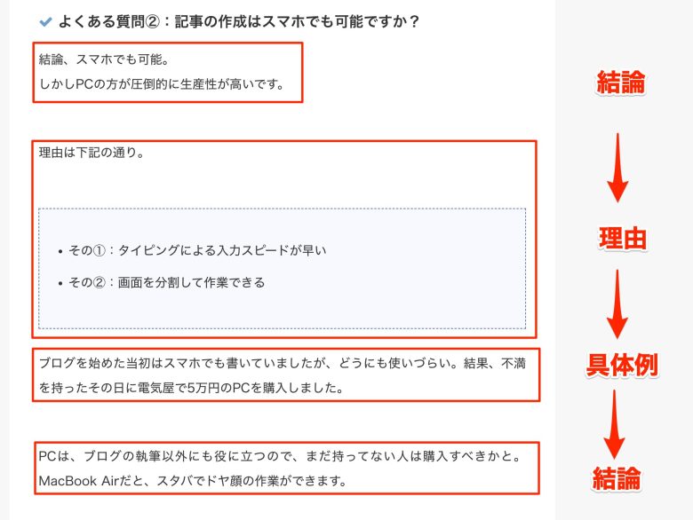 ① 問題提起(読者が抱えている悩みや問題を明確にする。)