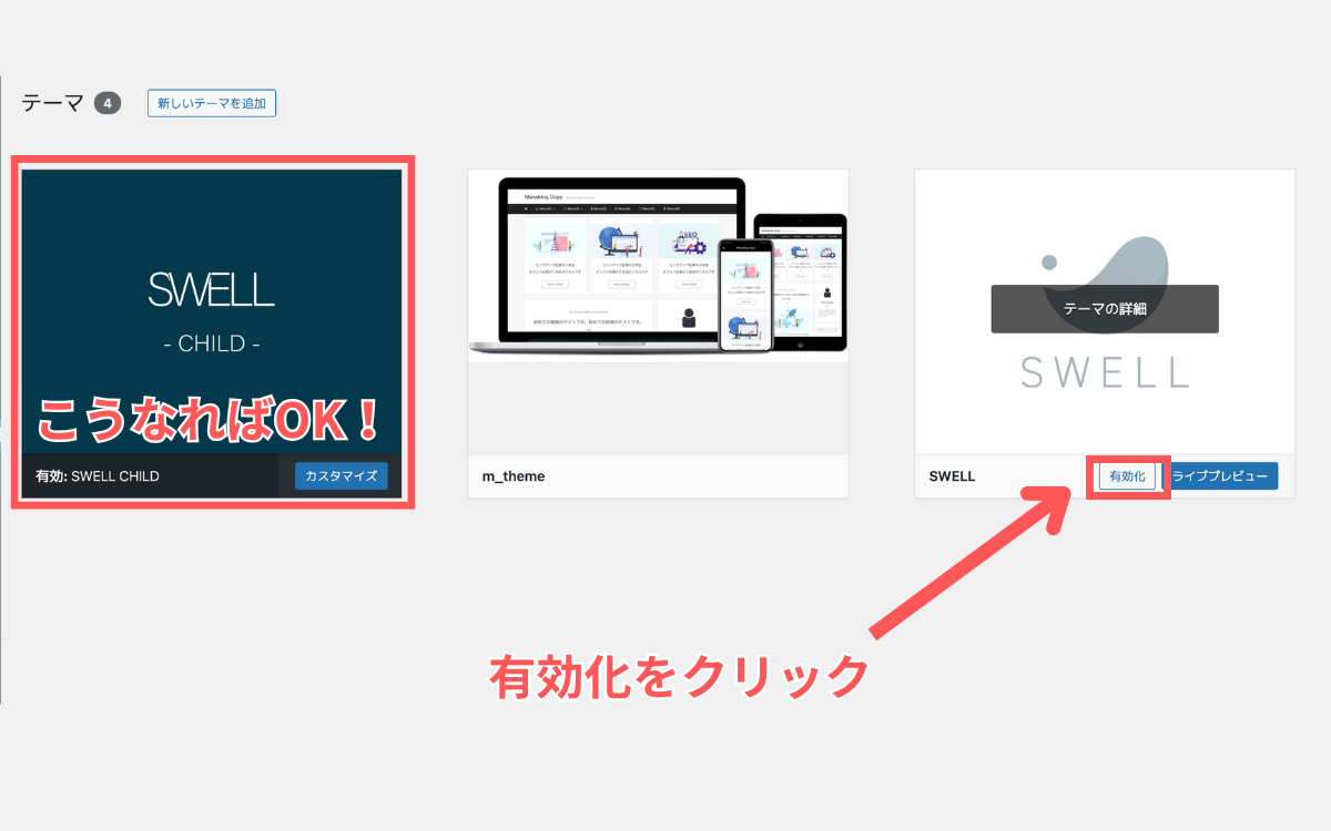 - WordPressテーマを有効化する手順