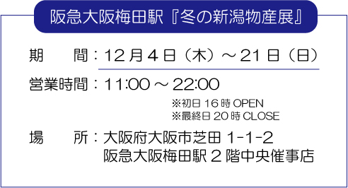 [店外出店]12/4-21 阪急大阪梅田駅「冬の新潟物産展」