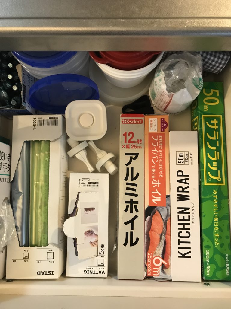 ラップの類とタッパーです。ごちゃごちゃ〜です。