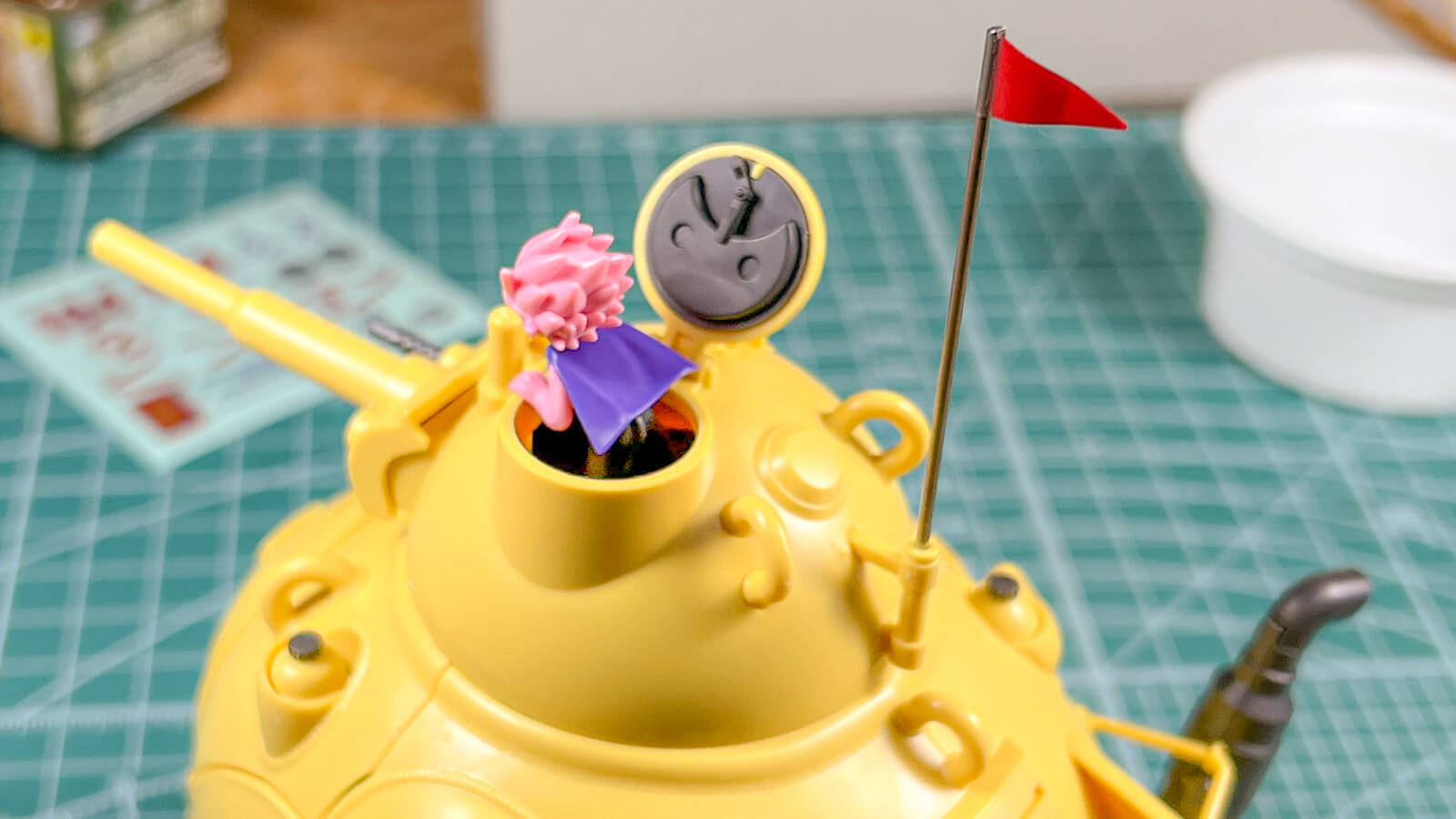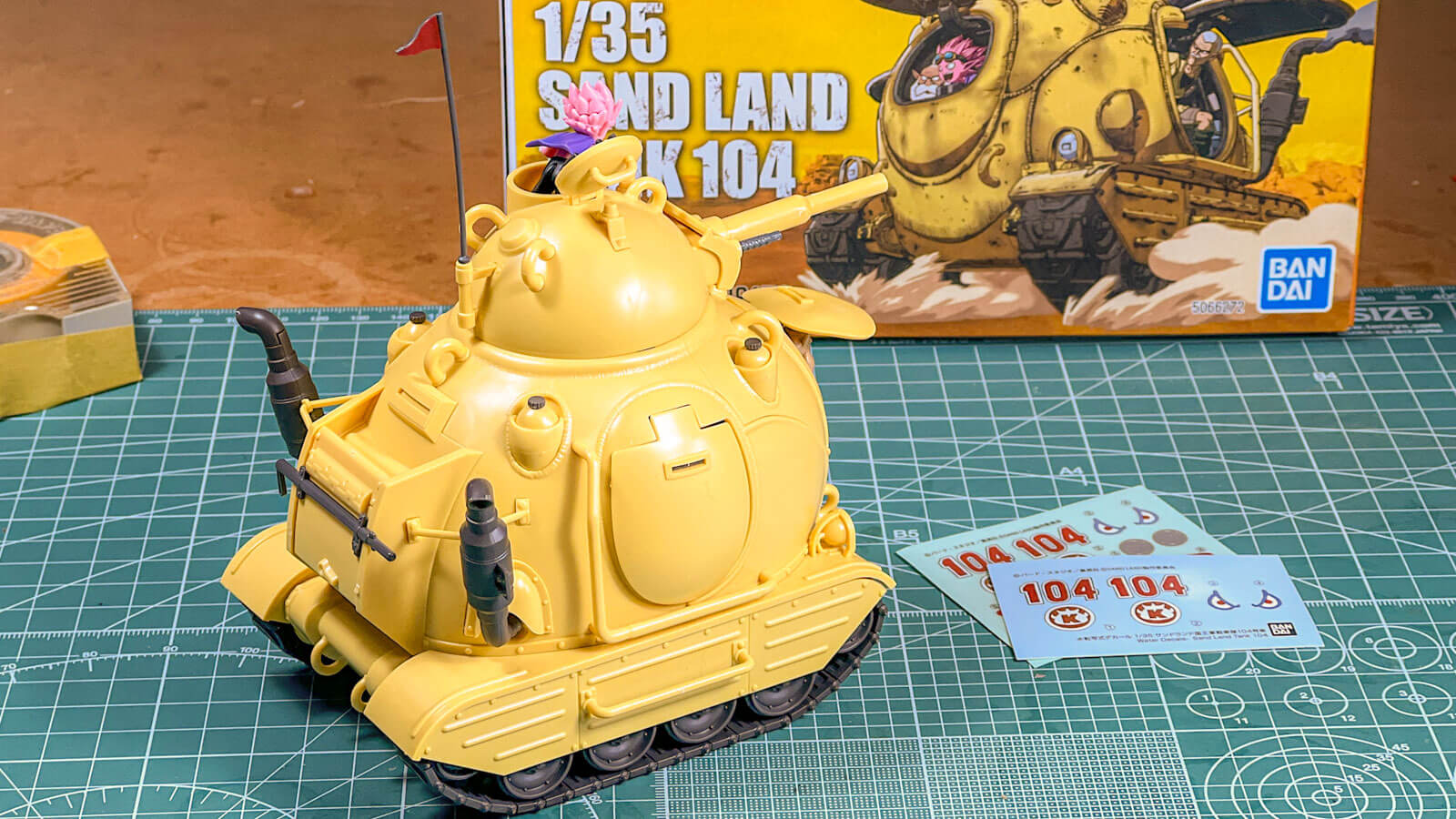 サンドランドの戦車のプラモの縮尺表記は1/35。戦車プラモにおける最もポピュラーな縮尺で、その数字を謳うだけで”ムード”が作れると言っても過言ではない。ただこの戦車には「全長全幅全高何メートル、重量何トン」といった寸法設定は存在せず、人物だってデフォルメが効いているし、「どこが何センチだから1/35なのだ」というわけではない。
