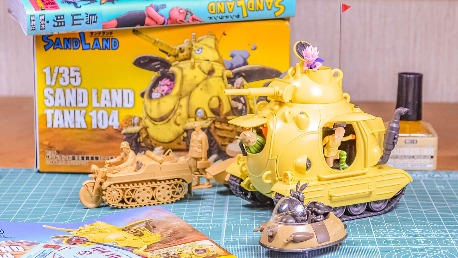 タミヤの1/35MMシリーズはもちろん、DBメカコレクションにも並べて違和感のないサイズのメカがある。元になるデザインやイラストが上手すぎるのでBANDAI SPIRITSくらいの技術のある大手メーカーなら普通に取り組めば100点以上が約束されると言われても納得してしまう鳥山明のメカニック。そこに同社が最近はリアルロボットアイテムでもあえて伏せることすら選択してきたスケール表記を「必要な要素」として採用し、なおかつそれ自体を「雰囲気づくりのアリバイ」として済ますことなく、パーツ構成から説明書に至るまで真摯に「サンドランドの戦車の(そして実在する戦車に通じる)プラモデル」として取り組んだ意欲作に仕上がっている。