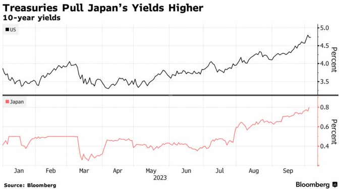 日本国債はインフレと米国債利回りの上昇を背景に売り圧力が増し、10年物国債利回りは約10年ぶりの高水準を記録