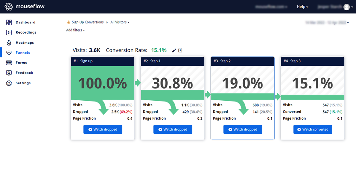With Mouseflow for WordPress you can access everything Mouseflow has to offer – directly from your WordPress dashboard! Learn more about your visitors by analyzing heatmaps and recordings of user sessions, including mouse movements, clicks, scroll events and more. The plugin makes it quick and easy to install Mouseflow on your WordPress-site.