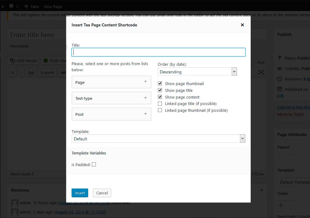 There is just one shortcode tea_page_content. Below there is an example with basic parameters.