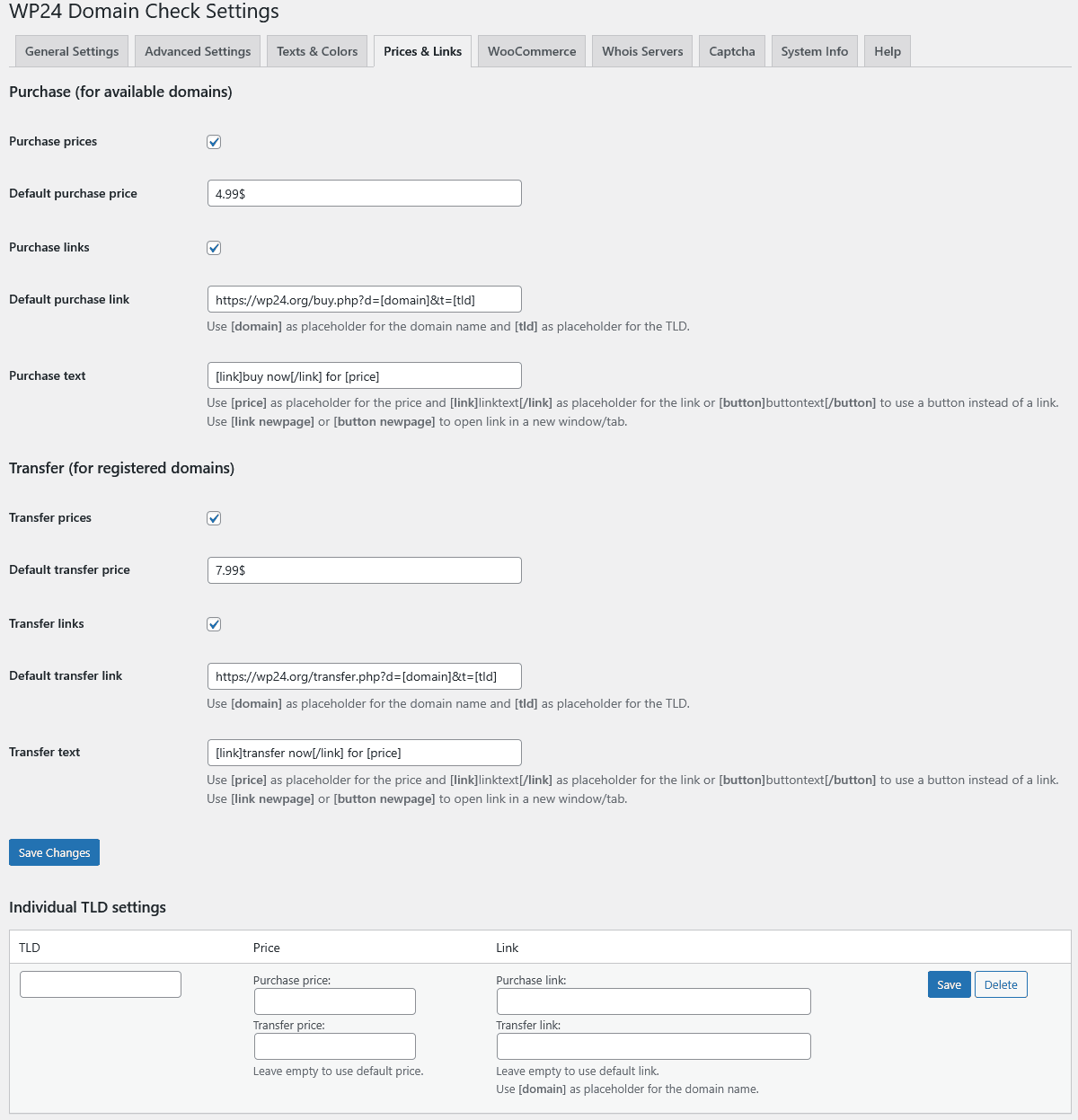 - Shortcode with top TLDs