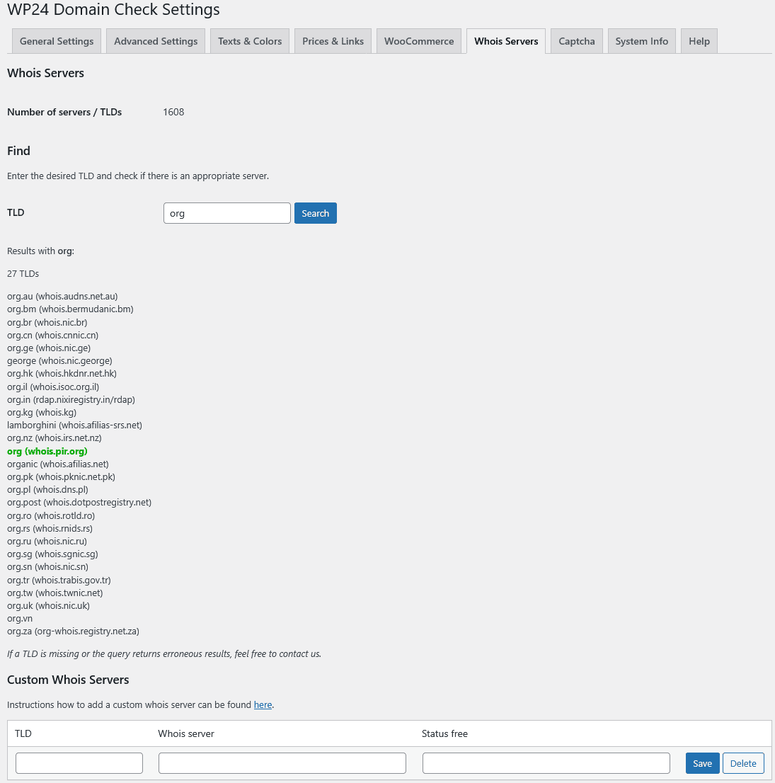 - Override whois server settings