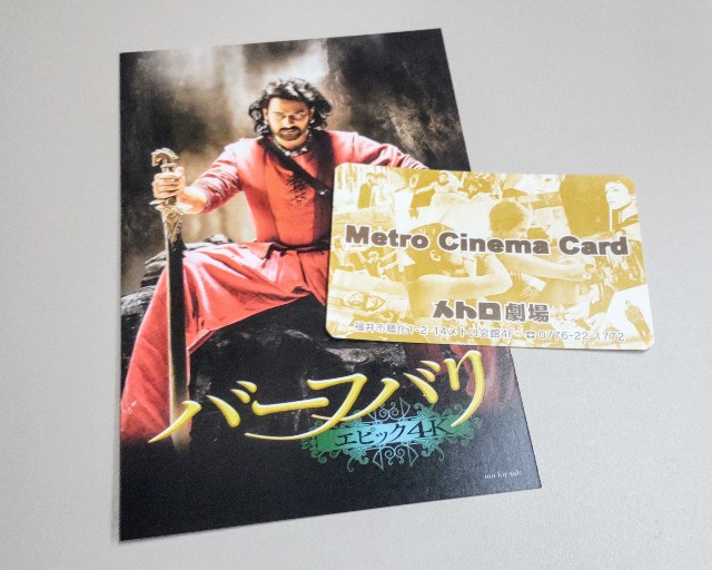 さて、本日のメインは12年ぶり2回めの福井メトロ劇場での「バーフバリ」鑑賞。金沢でも4K上映してるのに、わざわざ、福井で、2Kで。メンバーズカードも作ってもらっちゃいました😅