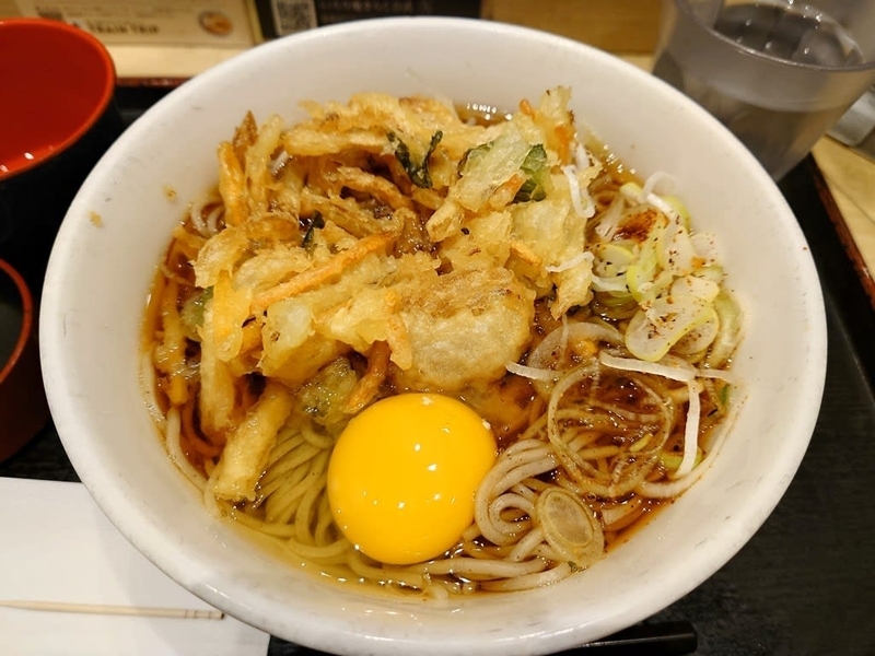 ということで、川崎駅構内にあるいろり庵きらくにて、期間限定の海苔香る小柱のかき揚げそばをいただきます。