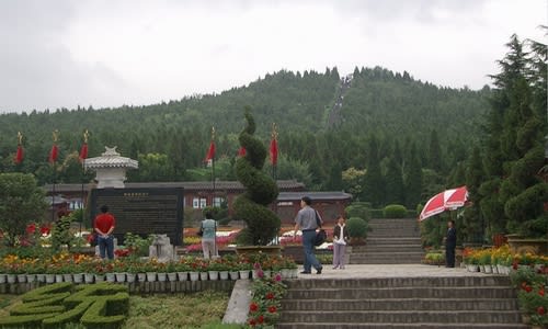 次は始皇帝陵で、最初に中国を統一支配したという最初の皇帝・秦の始皇帝の陵墓を走り登ります…が、天気が悪いのでたいした眺望ではありません。