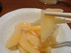 鳥料理の充実さに比べ、野菜系が若干弱いのですが、地物の野菜とか、新しょうがとかイロイロと工夫をされております。 ワシは野菜とかなくても大丈夫なんですけどね(笑)