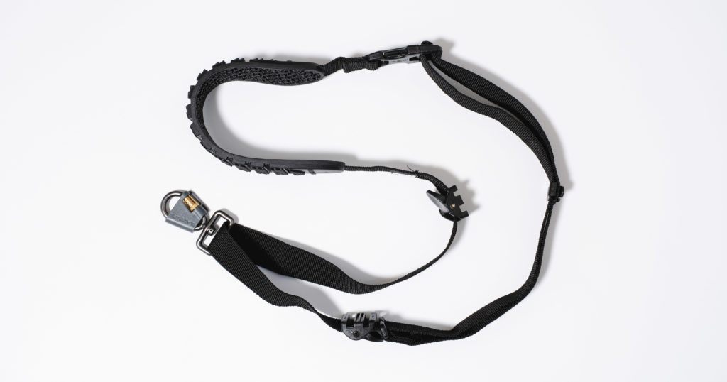 通常のストラップと異なり、カメラと接続しているアダプターがストラップ上をスライドして移動する仕様のため、速写性が優れているのがポイントだ。