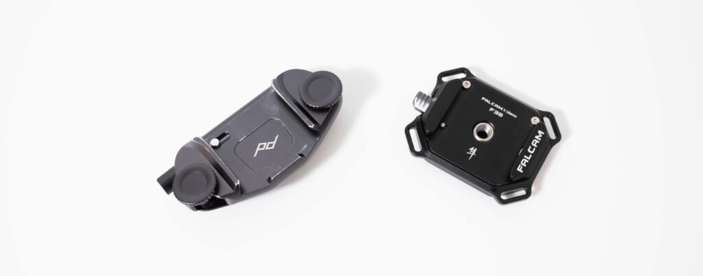 CaptureやF38などのホルスタータイプの場合は、専用の三脚プレートを使うだけのためカメラ側のデザインを崩すことはほぼ無い。ホルスターに関しては、コンパクトにまとまっていて、金属の塊感がカッコ良い。