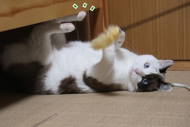 つくね♂さんは叩かれるままで、手を引くことをしません