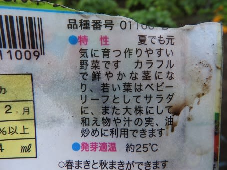 袋の裏には若い葉はベビーリーフとしてサラダなどにでき