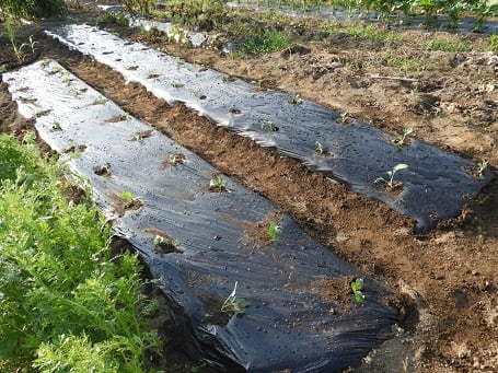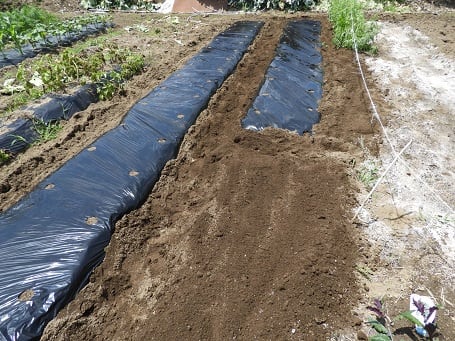 張ったマルチの穴は45センチ間隔で白菜用と同じで