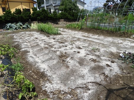 肥料や苦土石灰を撒いて耕し、暫しの休息いただいていた。
