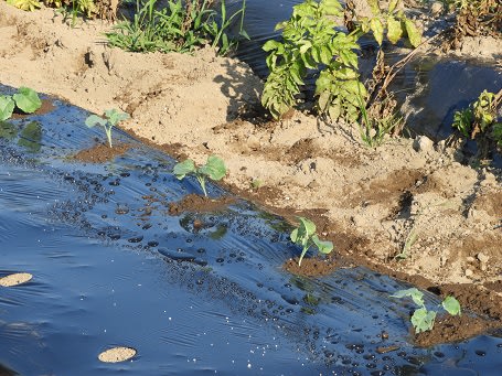 長いほうの列は一日前に植えた苗だけど、何とか萎れずにいるみたい。