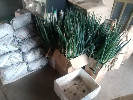 同じくペットボトルの箱に差し込ん立てておいた長ネギ