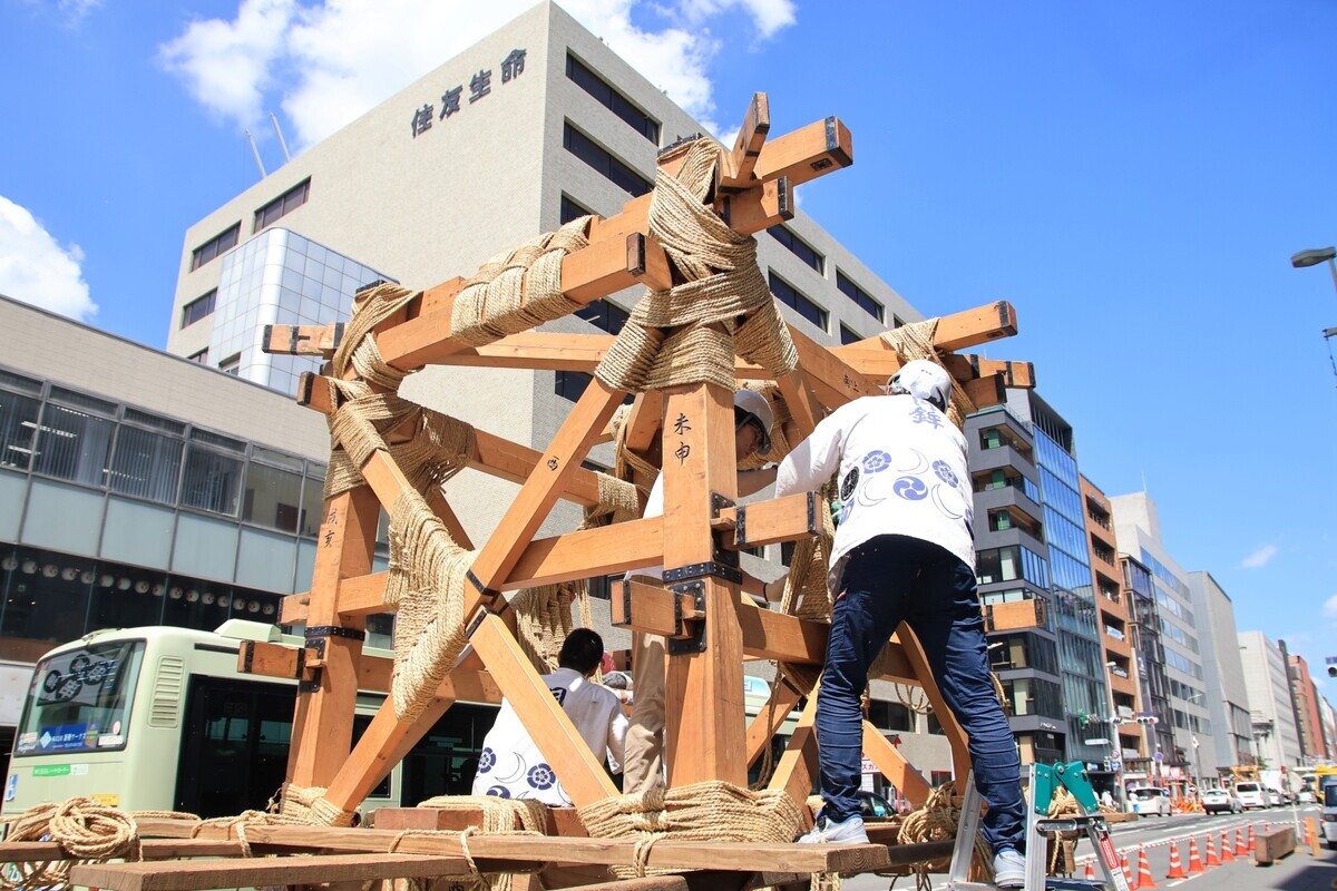 ただ、ことしは梅雨が明けるのがとってもはやかったからか、例年10日からはじまる鉾建てが9日からスタートしたようです。