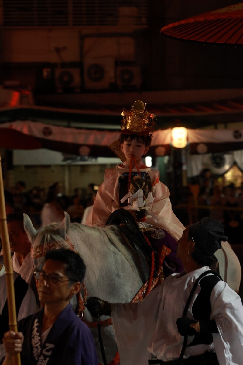 最後まで神輿を先導してきた久世駒形稚児くん。