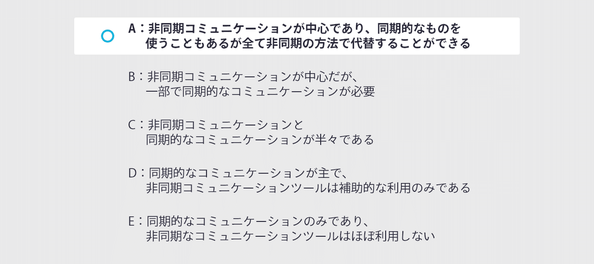 コミュニケーションが伴う業務において、同期・非同期のコミュニケーションはどういった割合か。