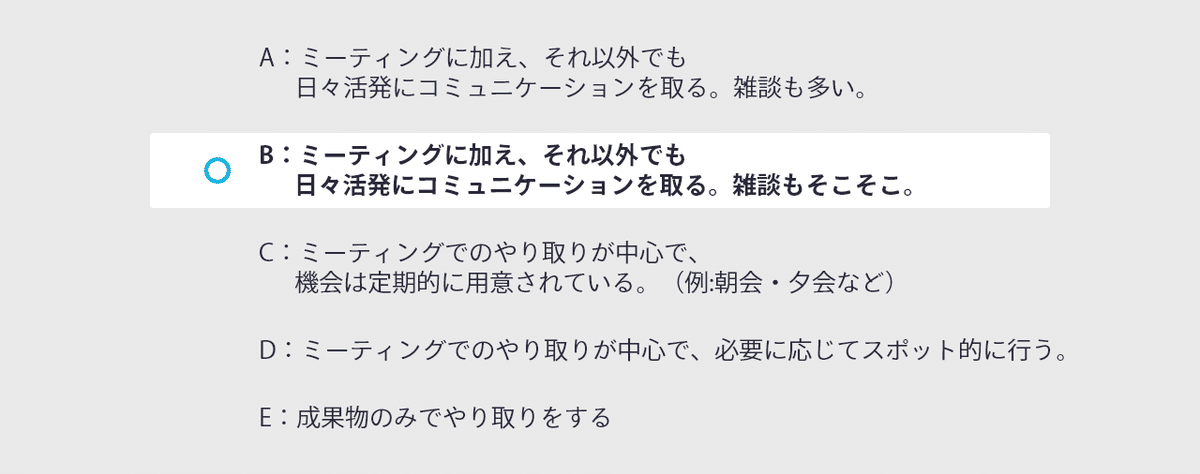 リモートワーク時に、どの程度他のメンバーとコミュニケーションを取るか (テキスト・ビデオなどの手段は問いません)