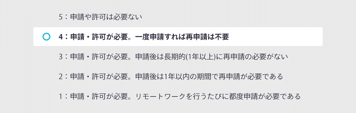 リモートワークを行うために何らかの手続きが発生するかどうか。 また、申請が必要な場合にはどの程度の頻度で申請を行う必要があるか。