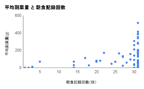 朝食記録と副菜摂取量に相関があるかどうか分析してみました。