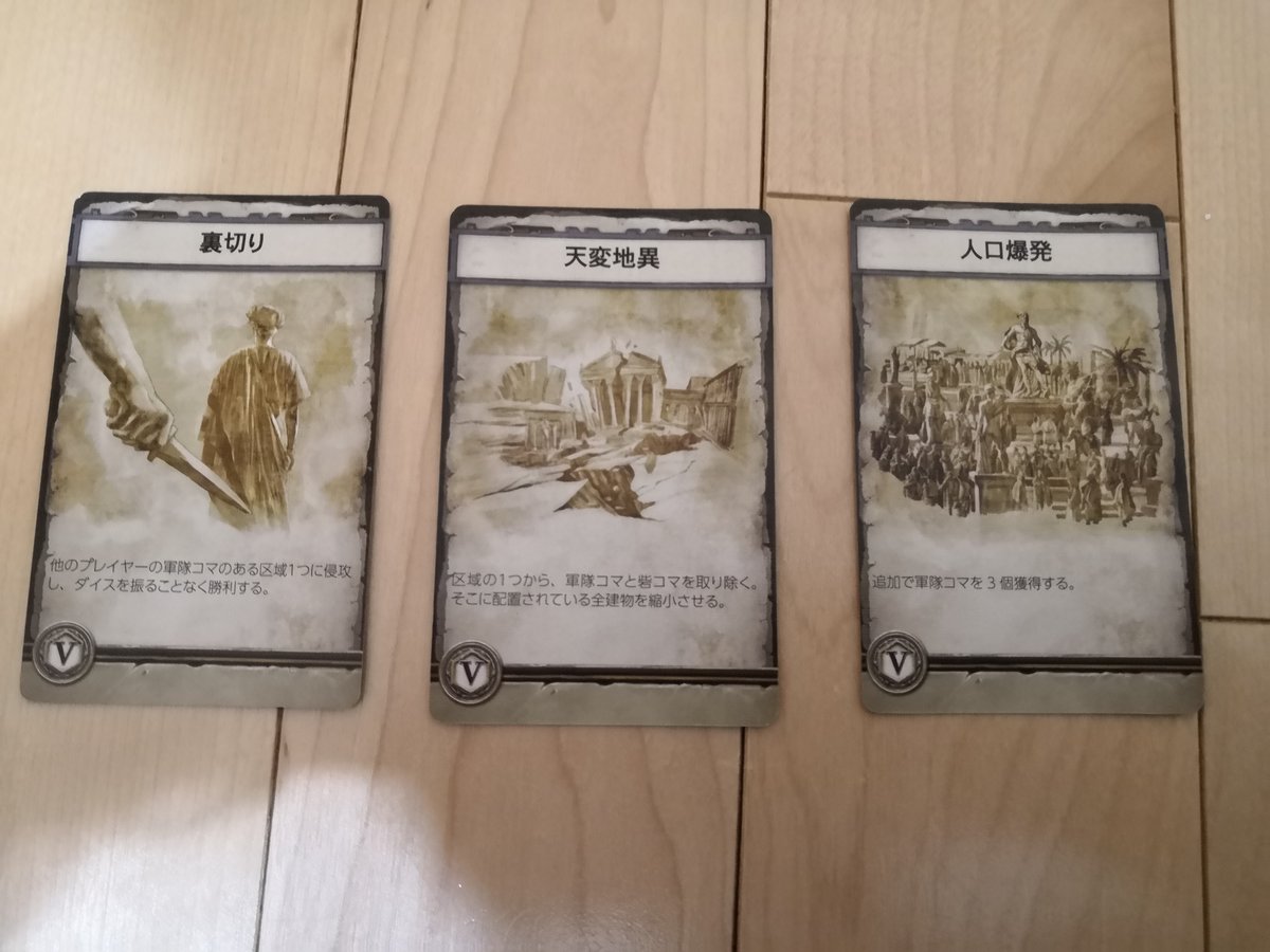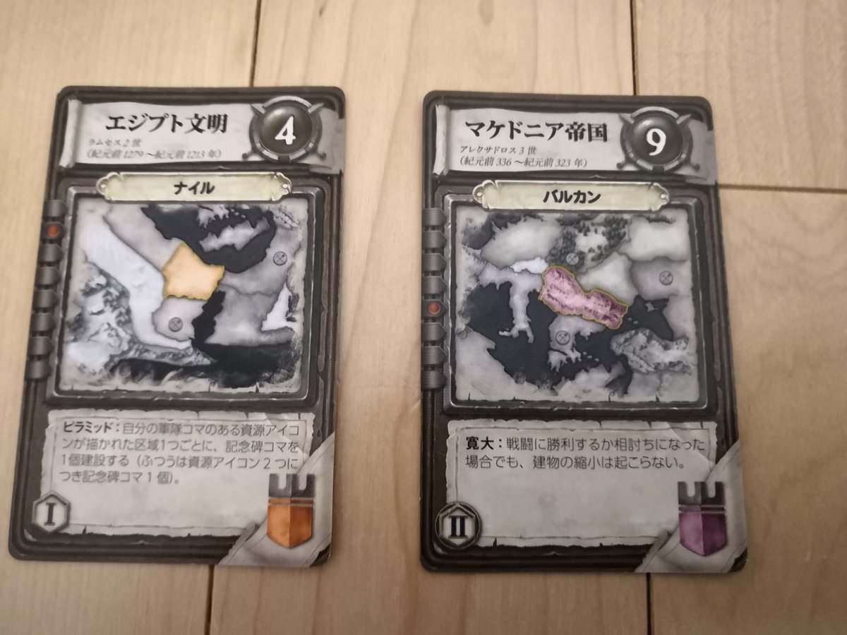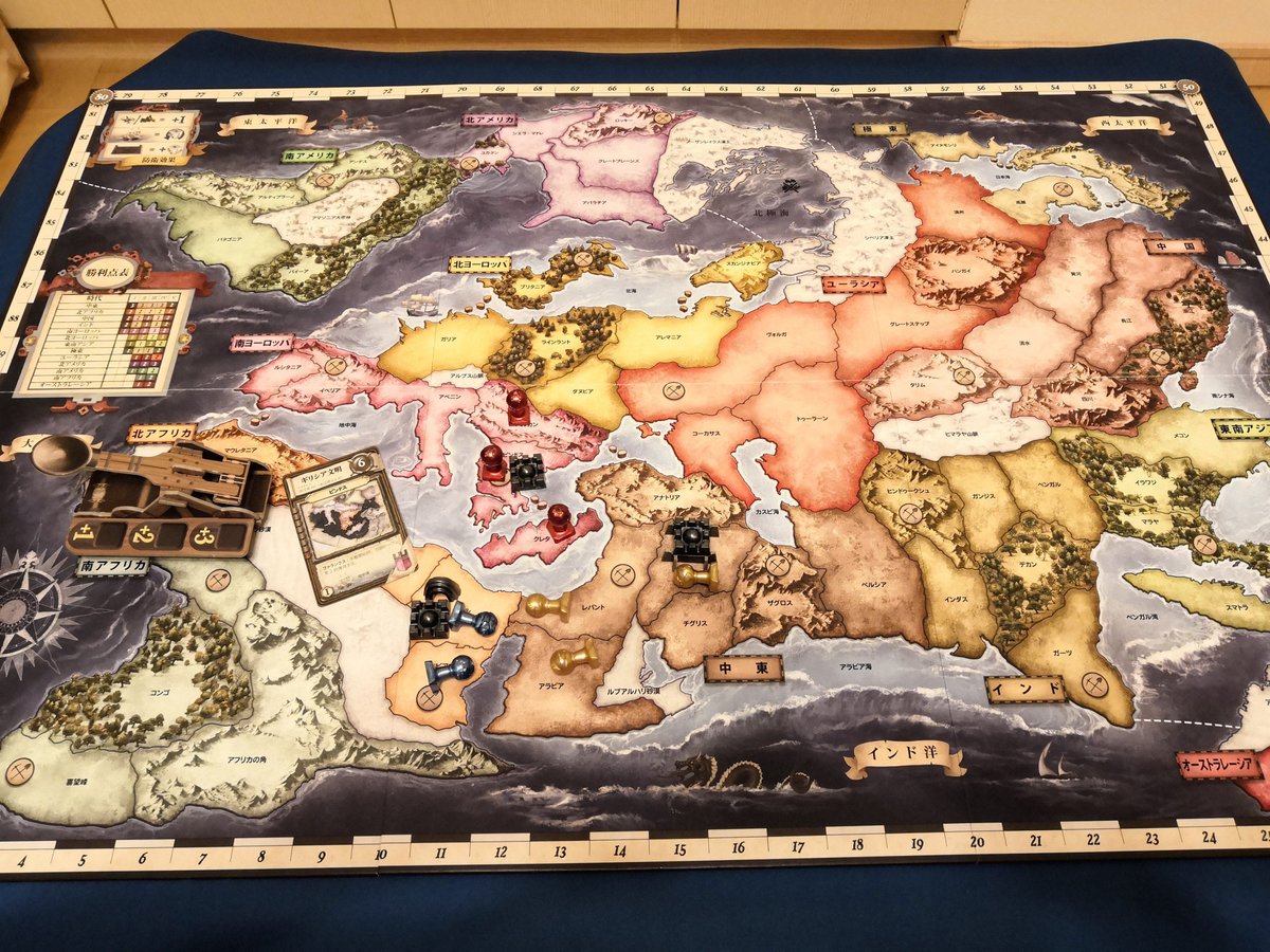 で、この場所と時代で異なる領土の勝利点がゲーム中の面白い動きにつながるのです。