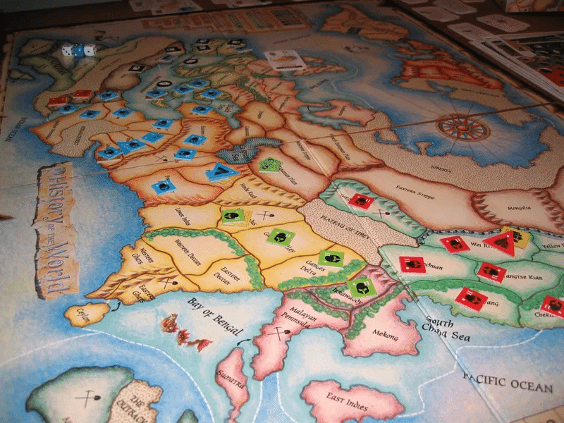 ヒストリーオブザワールドは、四大文明の発生から第一次世界大戦直前まで、約4500年の人類の歴史を辿る壮大な陣取りゲーム。