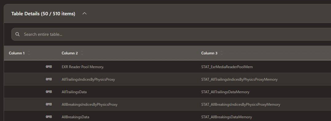UEのプロジェクトでメモリ使用量の調査などを行う場合はMemory Insightsなどを使ってプロファイリングすることになると思いまが、"memreport"というコンソールコマンド経由で出力できるダンプファイルも初手で雑に調べたい場合は便利です。