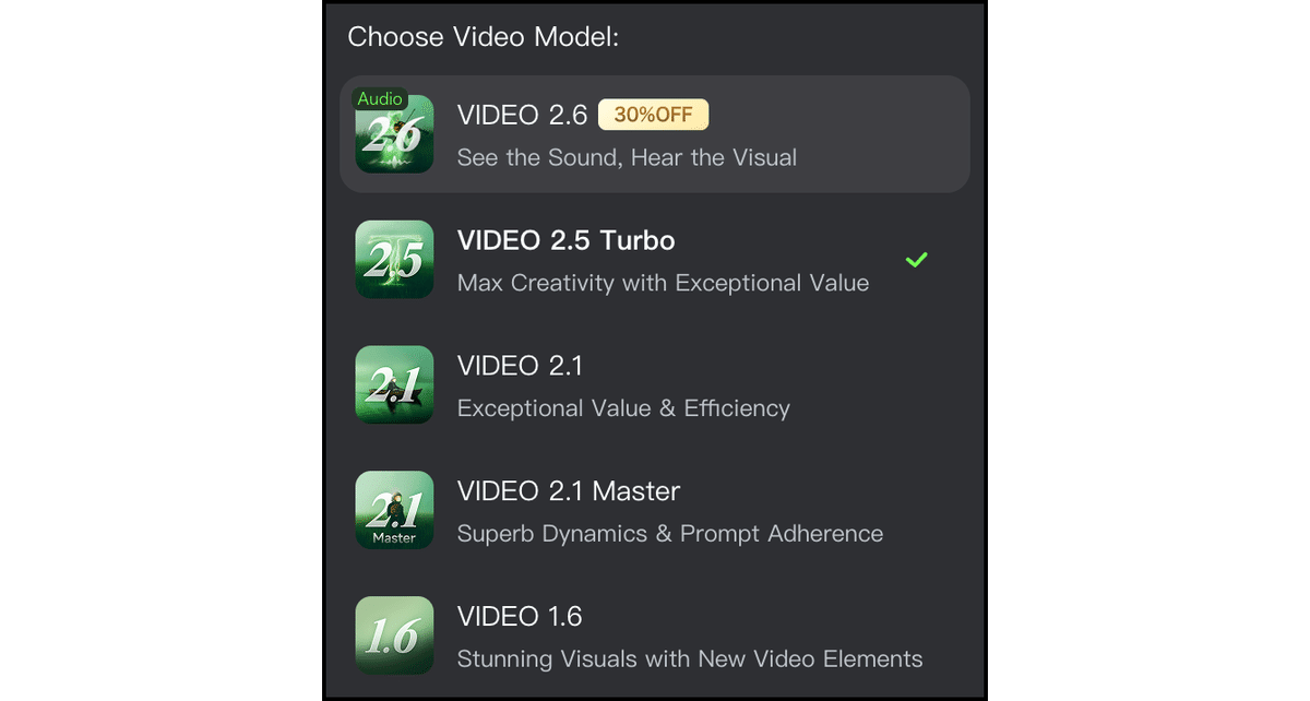 「v2.6」はネイティブオーディオを実現した動画生成の最新モデル。