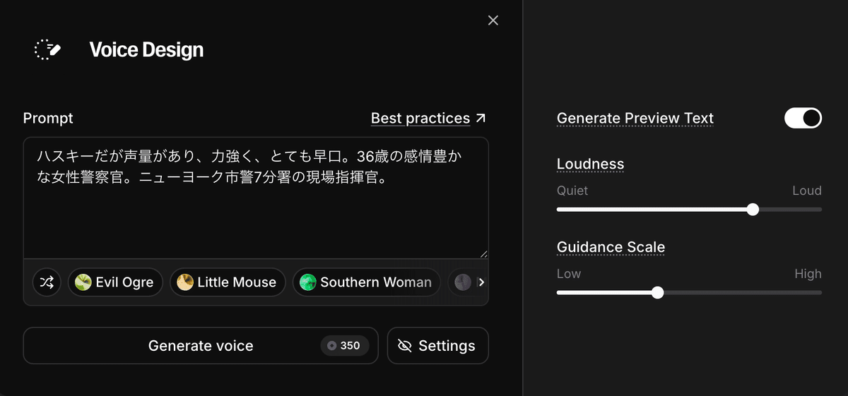 映像コンテンツにおいて登場人物の「声」が必要になったら、ElevenLabsで生成している。