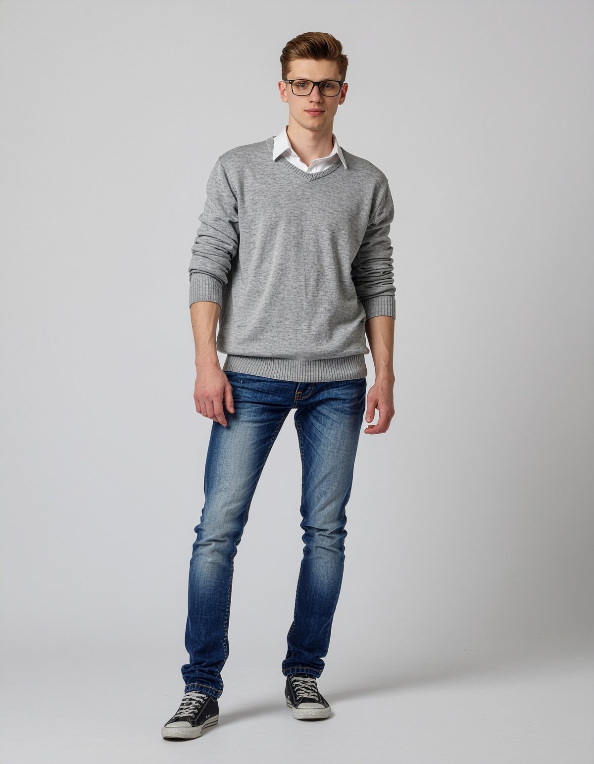 Full body view, High-end photography for luxury brands, Super cool 18 year old Russian boy fashion model, Pure white background