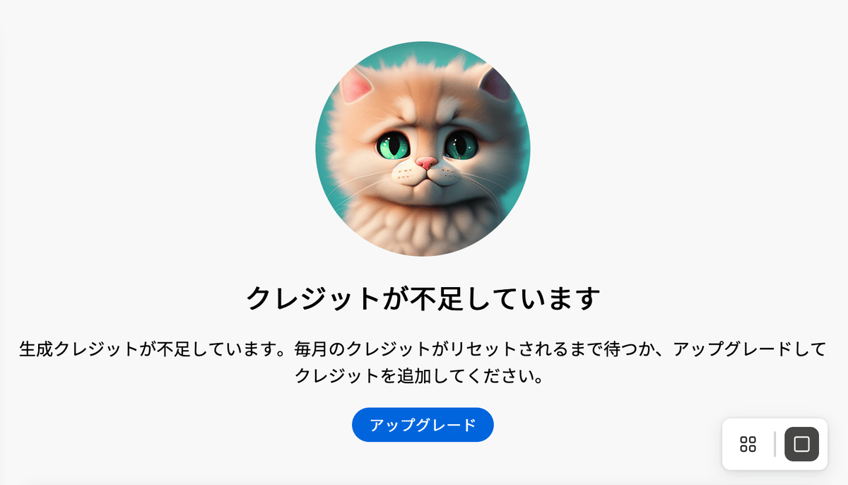 Firefly Standardプラン(月額:1,580円)だと付与されるのは2,000クレジットなので「4回」しか生成できません。Firefly Proプラン(月額:4,780円)以上のユーザー向けになりそうです。