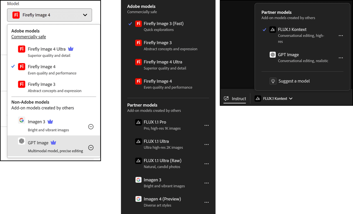 Firefly webで使用できるAIモデル(2025年6月16日現在)