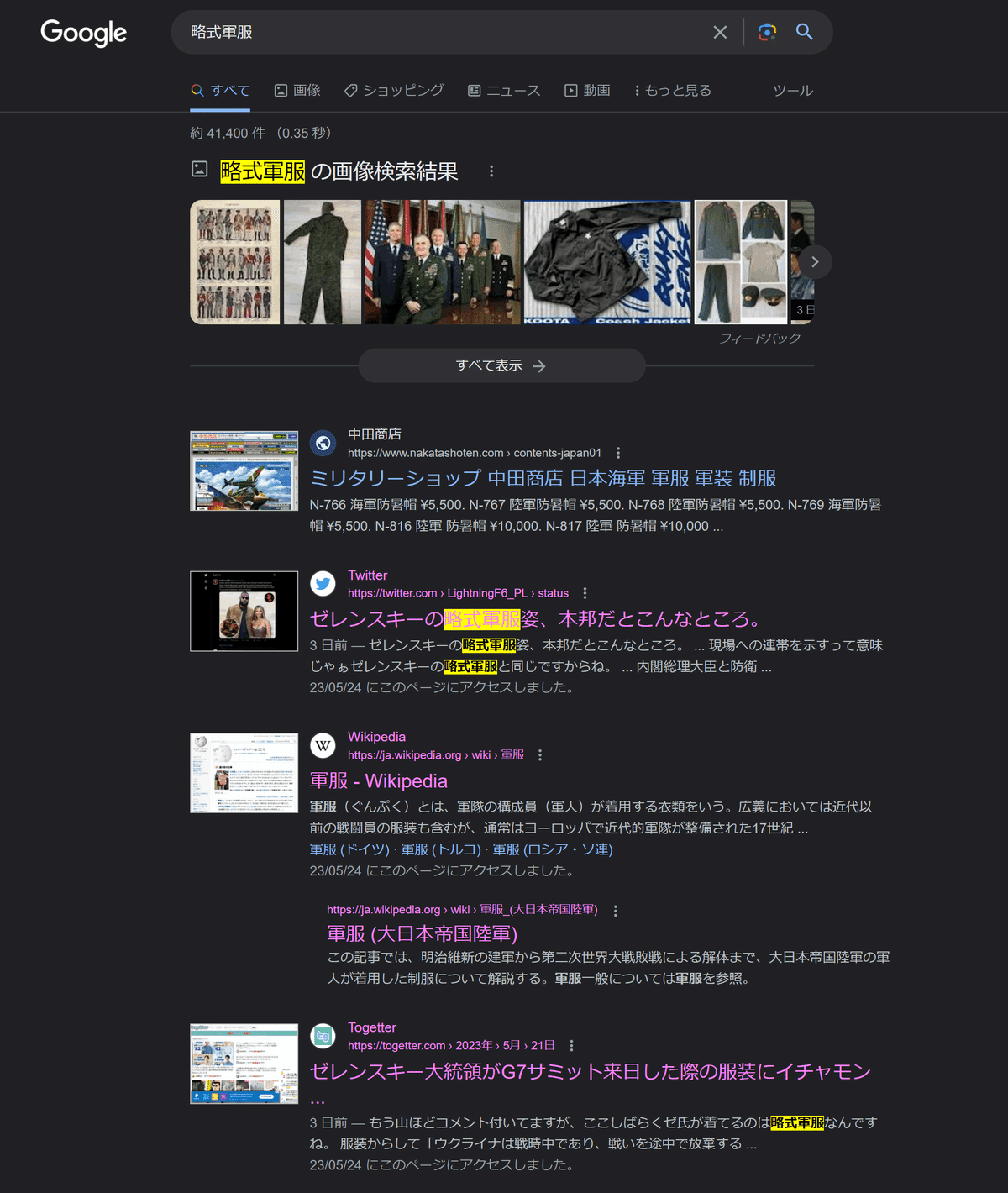 ツイッターで「略式軍服 until:2022-01-01」と検索する。