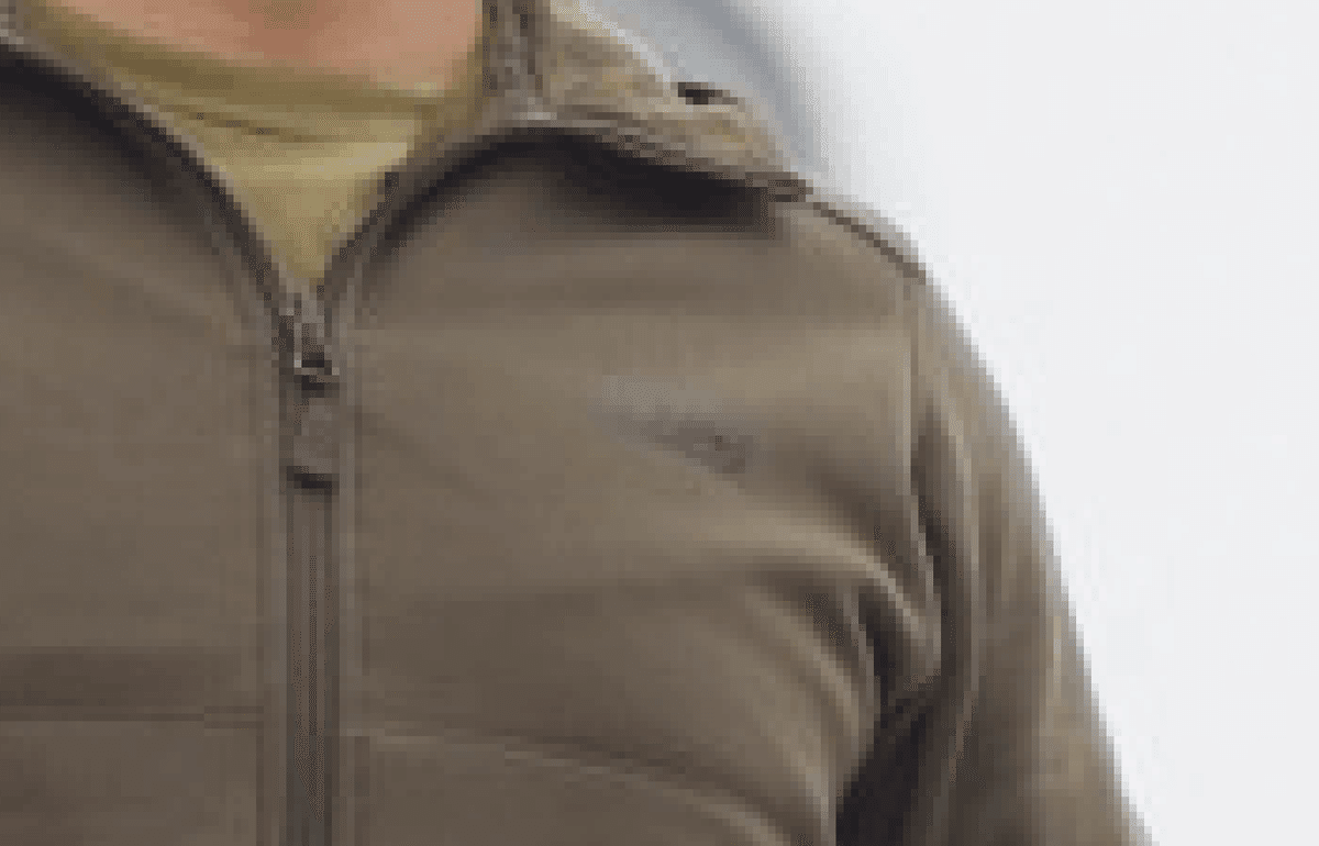 パーカーの左胸に黒くうっすら見えるロゴ…。